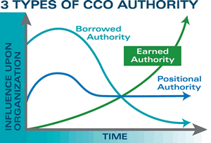 Many CCOs begin with positional authority and borrow heavily additional authority from the CEO. The most effective CCOs with the longest tenure are those who quickly earn their own authority. Ultimately, such earned authority can eclipse both positional and borrowed authority in power and value. Earned authority is the strongest and most sustainable type of authority, enhancing both positional and borrowed authority as it increases.