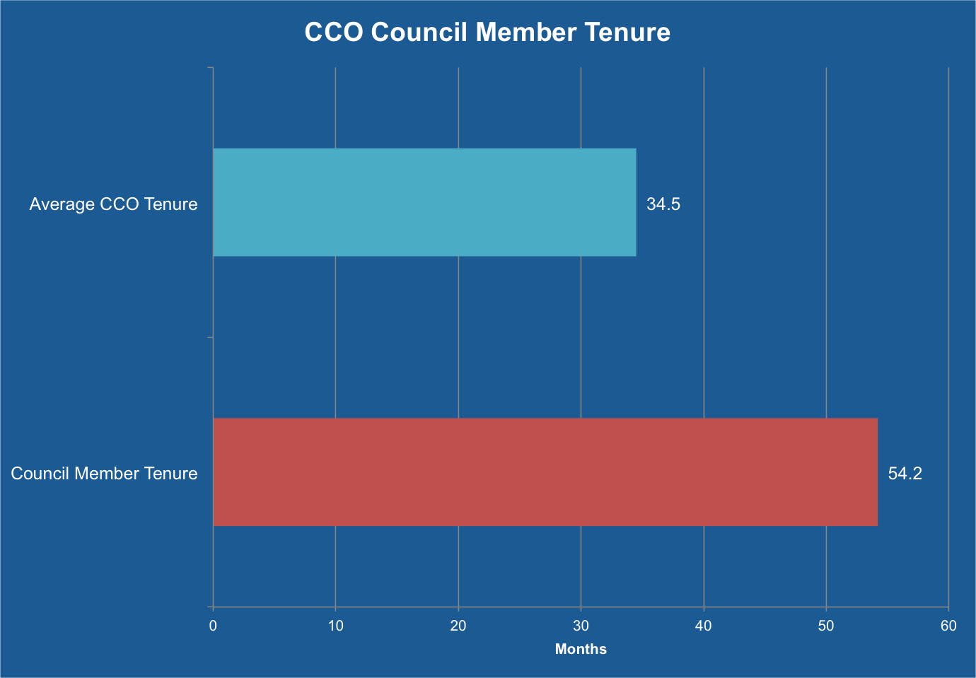 One of the more exciting findings is the lengthened tenure of members of the CCO Council. Where average enterprise tenure is 34.5 months, tenure of Council members is a whopping 54.2 months. CCO Council members are demonstrating significantly greater ROI as they elicit greater executive commitment and involvement, demonstrate a clear impact on executive objectives, and incorporate customer strategy into the overall corporate strategy. As well, they enjoy significantly greater influence over the rest of the organization as they balance business and customer needs.
