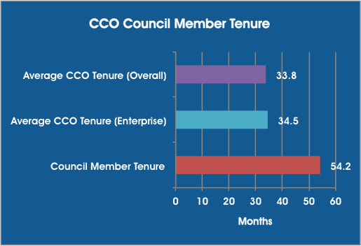 CCO Council member tenure is an extremely robust 54.2 months.