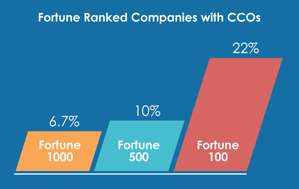 The chief customer officer (CCO) is becoming a staple of modern business: 22% of Fortune 100 companies and 10% of Fortune 500 companies have adopted the role. It is common in small companies and, to a lesser extent, enterprise companies, but inexplicably uncommon in mid-size companies.
